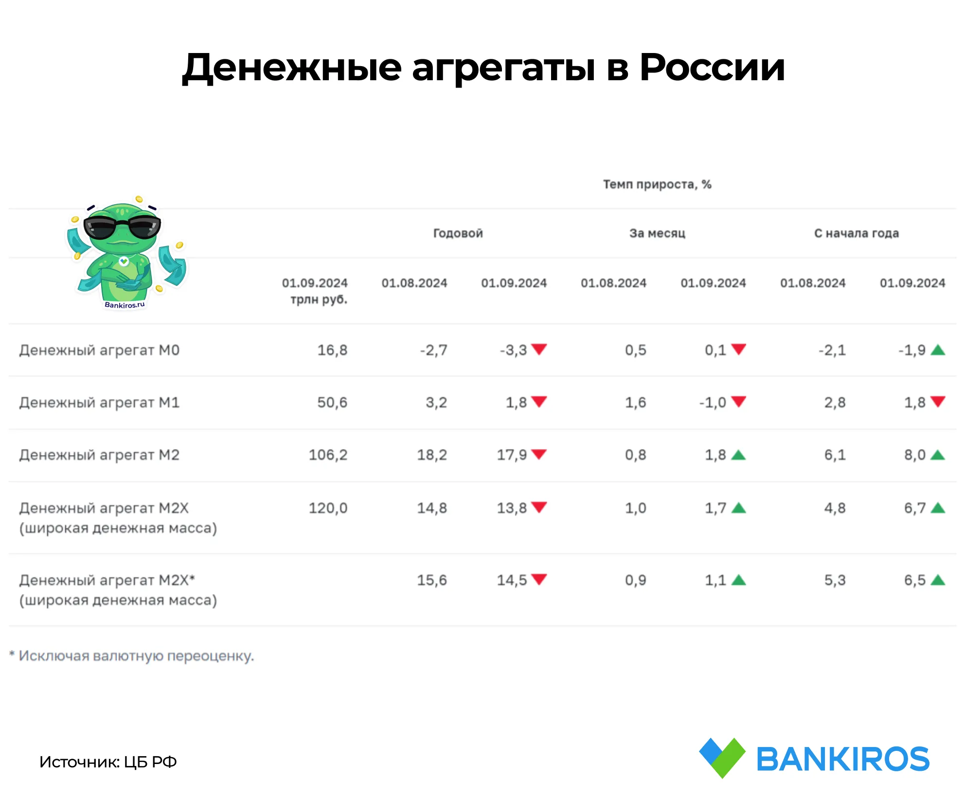 - Рост денежной массы. С 1 марта 2022 года, уже после начала СВО, денежная масса (агрегат М2) выросла с 66 трлн рублей до 106 трлн на 1 сентября – то есть на 60% за почти два с половиной года, подчеркнул эксперт.