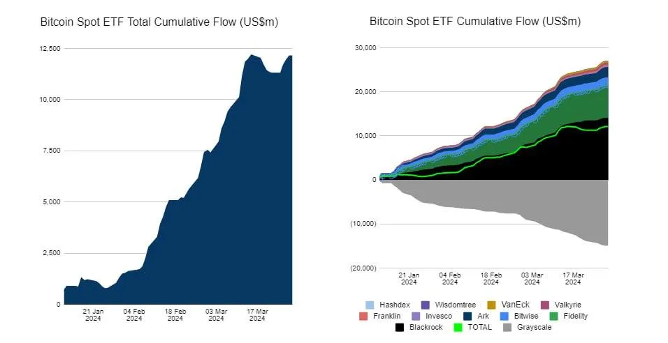 11 января 2024 года были запущены спотовые биткоин-ETF. И это событие оказало на крипторынок еще большее влияние, чем ожидал Мейнхард ранее.