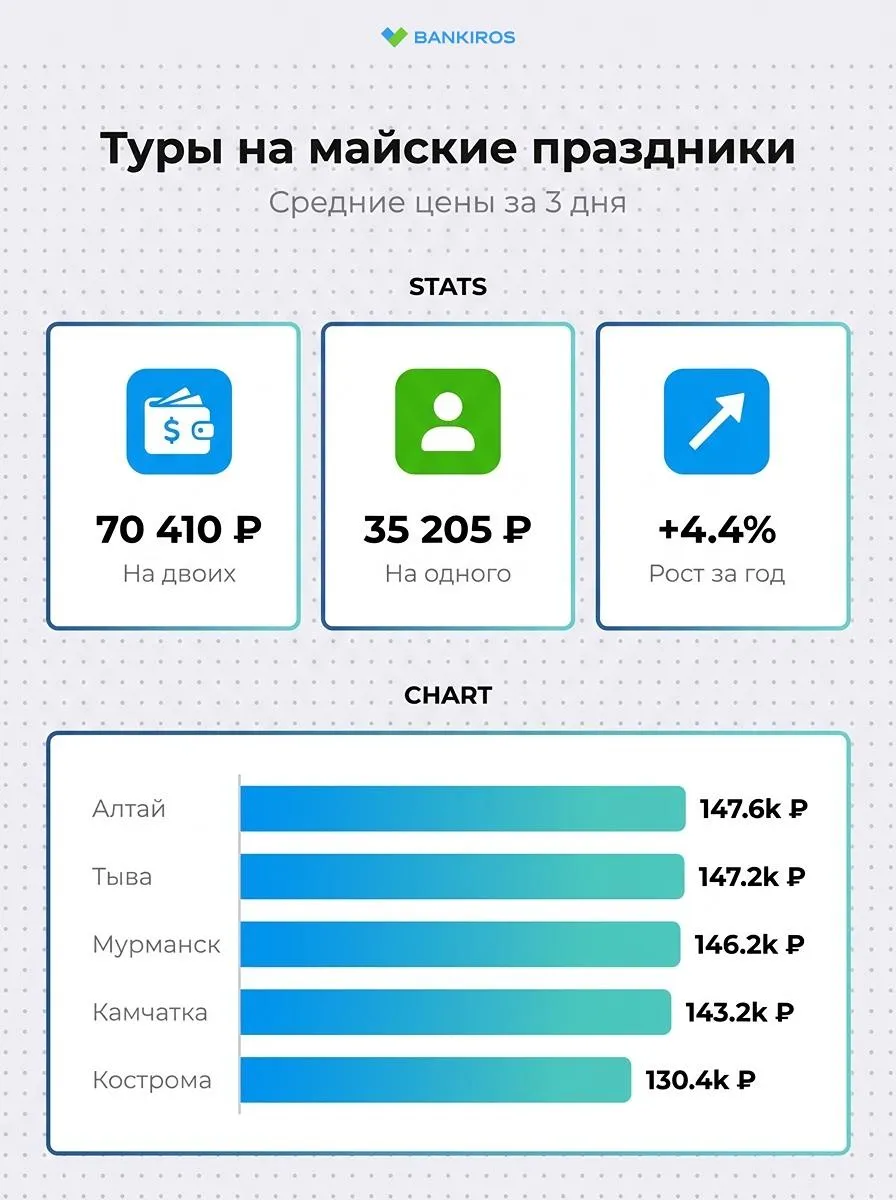 Команда Bankiros.ru посчитала к майским праздникам, сколько стоят экскурсионные туры в разных регионах и выяснила, как выросла цена за год.