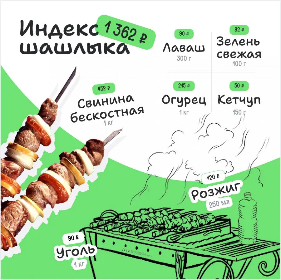 - В целом по России индекс шашлыка составляет 1362 руб.