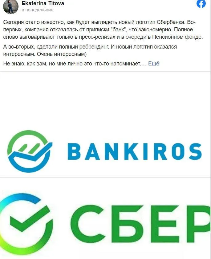 Каждый по-своему оценил новый логотип Сбербанка. Например, редакция Bankiros.ru увидели в нем что-то родное и похожее. Сотрудники тоже поведали об этом в социальных сетях: