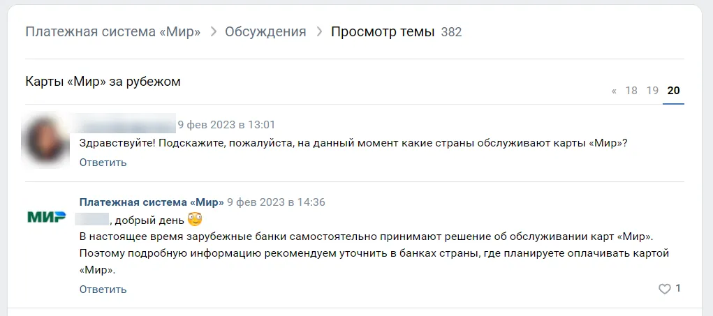 Из обсуждений в ВК паблике «Платежной системы Мир»