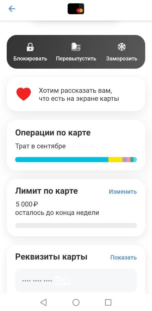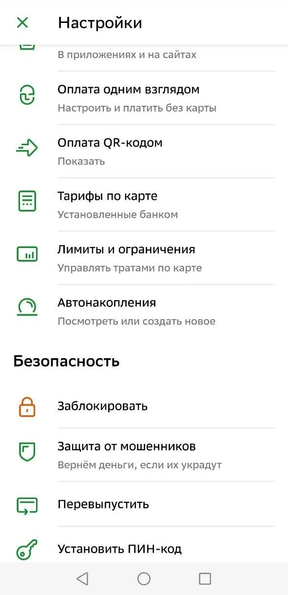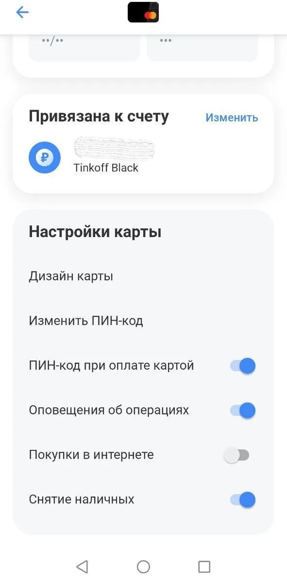 Также в настройках карты вы можете запретить покупки в интернете, снятие наличных, потребовать ввод ПИН-кода при оплате товаров и услуг картой.