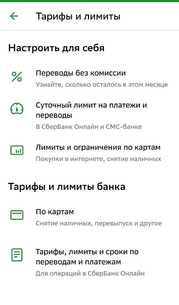 Например, настроить параметры онлайн-операций: определить лимиты платежей и переводы, установить ограничения на определенные операции можно в мобильном приложении Сбербанка.