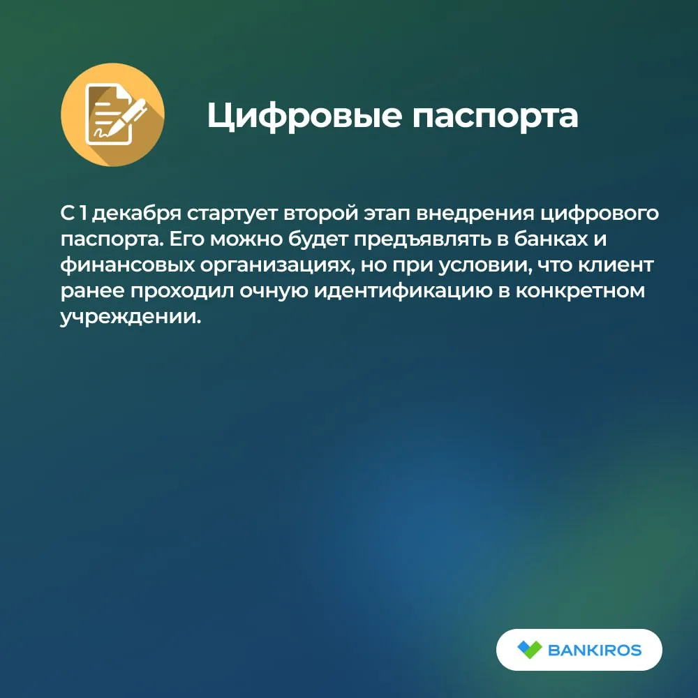С 1 декабря стартует второй этап внедрения цифрового паспорта. Его можно будет предъявлять в банках и финансовых организациях, но при условии, что клиент ранее проходил очную идентификацию в конкретном учреждении.