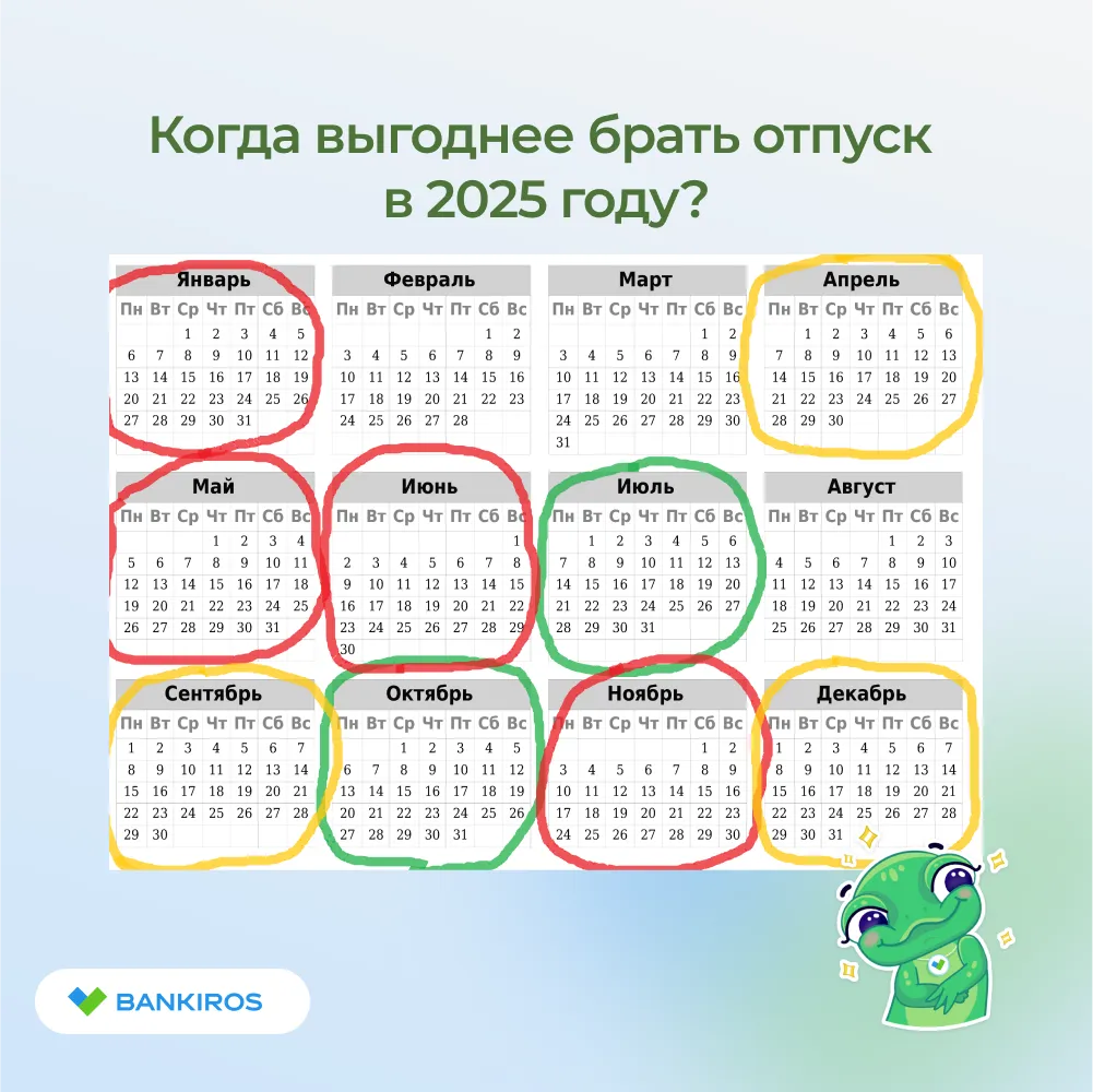 Наиболее выгодными месяцами для отпуска в 2025 году станут июль и октябрь, если вы не хотите терять в деньгах. Об этом рассказала Елена Стрижкова, HR бизнес-партнер АО «Свой Банк», в беседе с Bankiros.ru.