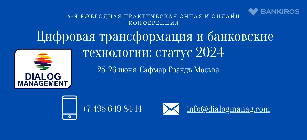 Компания Диалог Менеджмент Партнерс приглашает принять участие в 6-ой ежегодной практической ОЧНОЙ и ОНЛАЙН конференции «Цифровая трансформация и банковские технологии: статус 2024», которая состоится 25-26 июня 2024 года., в отеле Сафмар Грандъ Москва 5* (бывший Марриотт Гранд).