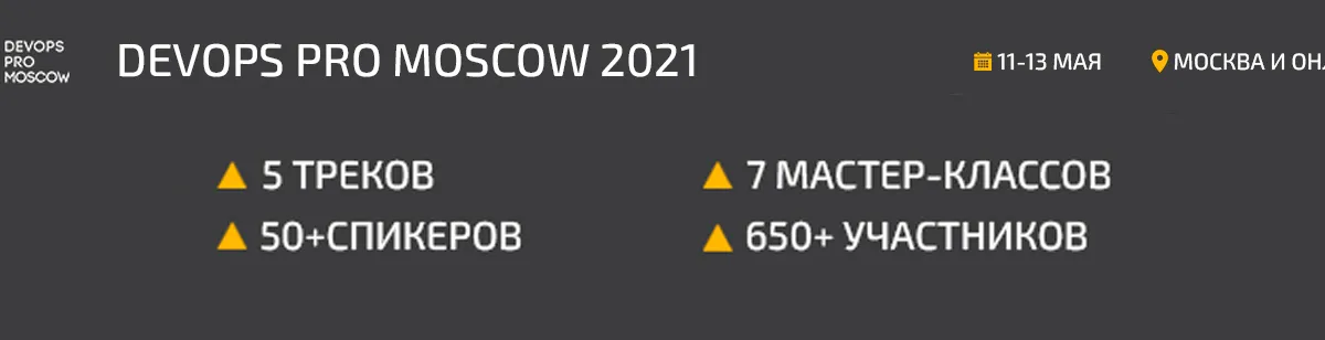 DevOps Pro Moscow — лидер среди конференций, пройдет 11-13 мая. Здесь соединяются образ мышления, профессиональные знания, инструменты разработки IT продуктов, методологии IT процессов и контроля качества (QA). Темы конференции охватывают основные принципы и концепции DevOps методологии и демонстрируют способы использования основных приемов разработки, внедрения и технической поддержки приложений как локально, так и в облаке.