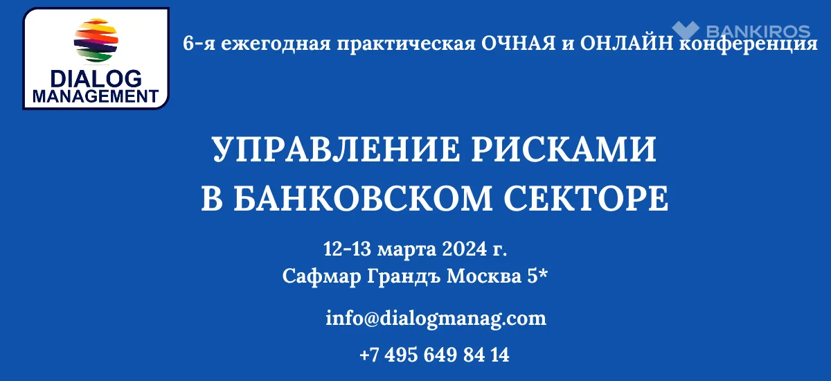 Компания Диалог Менеджмент Партнерс приглашает принять участие в 8-й ежегодной практической конференции "УПРАВЛЕНИЕ РИСКАМИ В БАНКОВСКОМ СЕКТОРЕ", которая состоится в ОЧНОЙ и ОНЛАЙН форматах 12-13 марта 2024 года в Сафмар Грандъ Москва (бывший Марриотт Гранд).