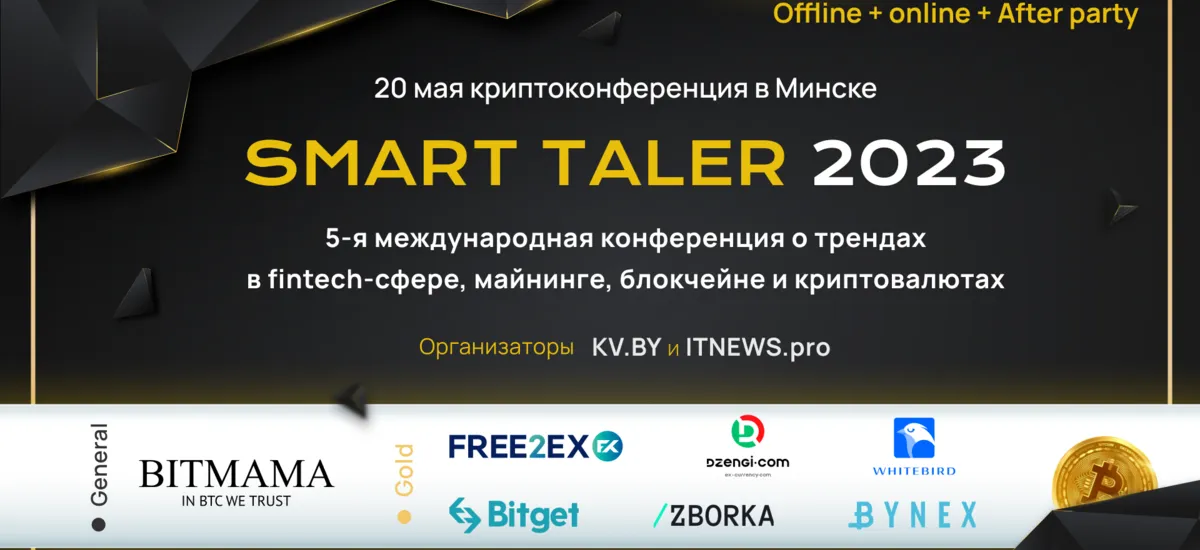 20 мая в Минске состоится масштабное событие в криптосфере – конференция Smart Taler. Это V международная конференция о трендах в fintech-сфере, майнинге, блокчейне и криптовалютах. Мероприятие пройдет в онлайн- и офлайн-форматах.