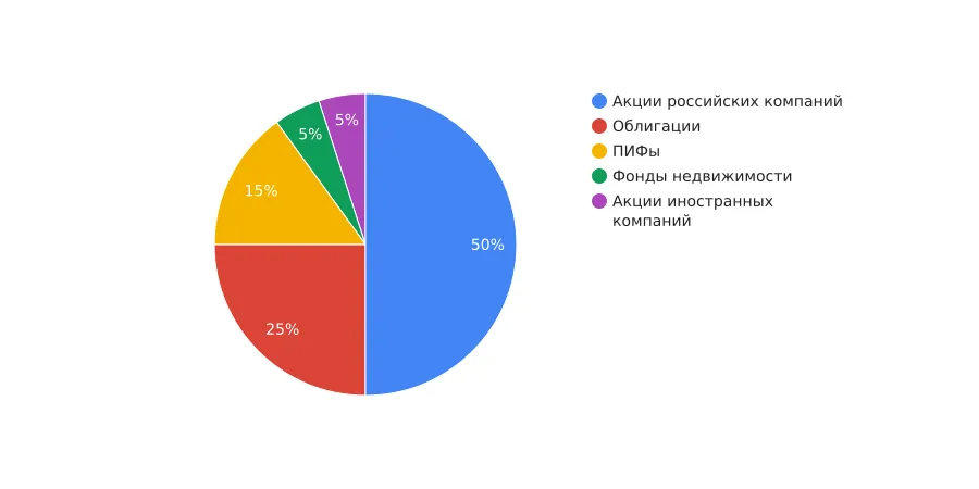 - Эксперт посоветовал до 50% вложить в акции российских предприятий, а до 25% — в облигации;