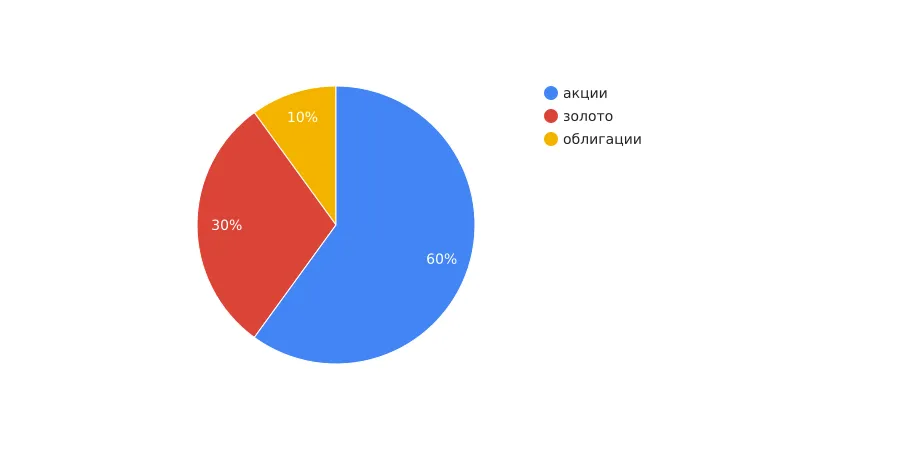 - Если курс доллара заметно падает, то можно 60% вложить в акции, 30% — в золото, и еще 10% в — облигации;