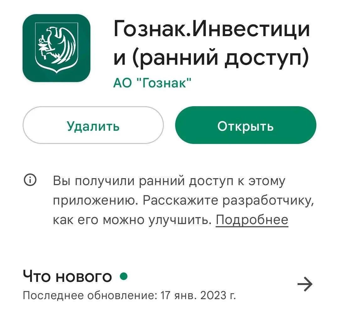 Мобильное приложение «Гознак.Инвестиции» в пробной версии уже доступно для скачивания в магазине приложений Google Play.