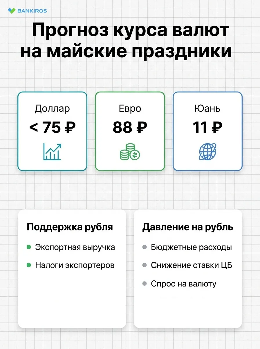 - На майских праздниках 2026 года рубль будет получать мощную поддержку от ряда внутренних факторов;