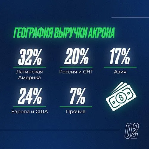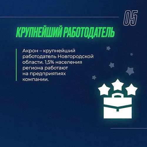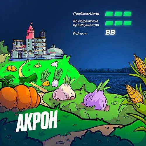 Группа «Акрон» входит в число крупнейших мировых производителей удобрений. В год компания выпускает 5 миллионов тонн азотных и 2,6 миллиона тонн комплексных удобрений, экспортируя 85% продукции.
