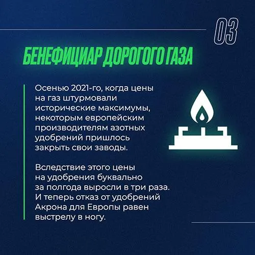 - Санкции со стороны Европы и США, на которые приходится 25% выручки Акрона. Кроме того, у Акрона есть зарубежные активы, которые могут заморозить.