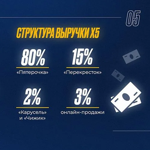 X5 Group – лидер продуктового ретейла в России с долей рынка 13%.