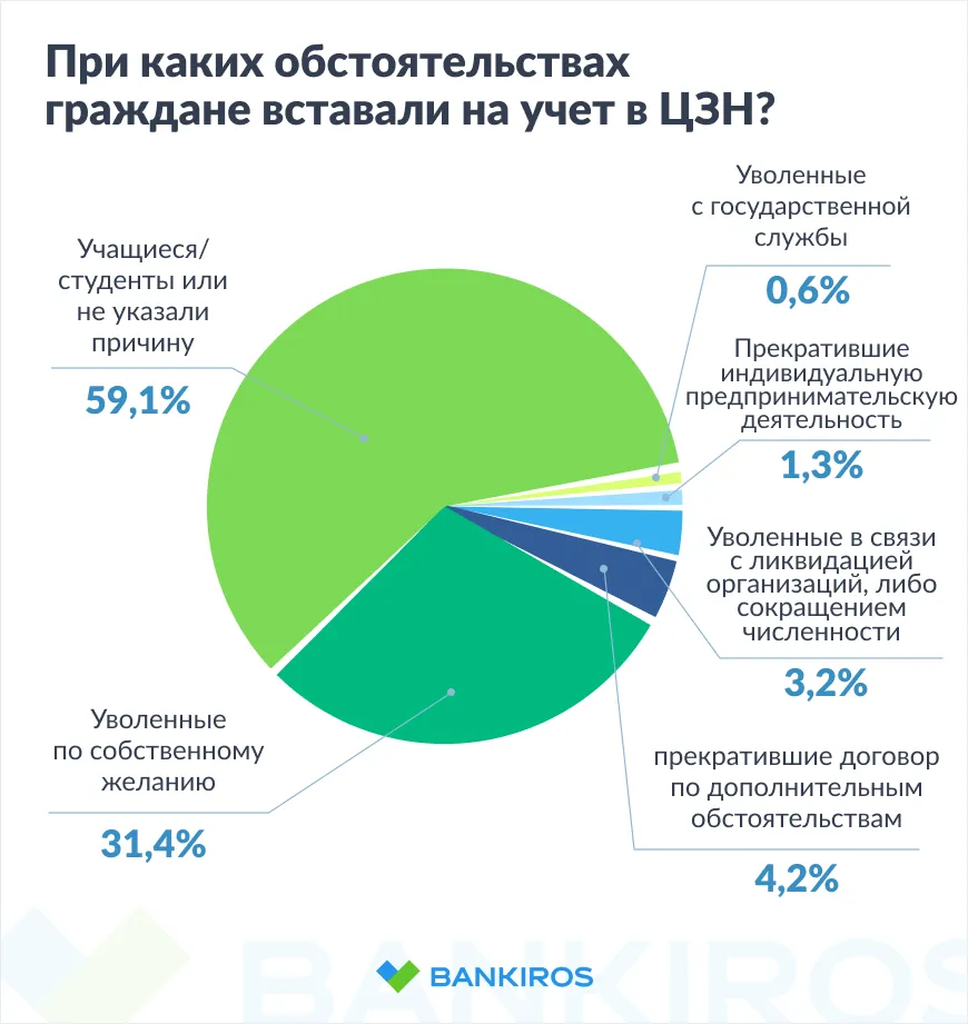 Чаще всего обстоятельством для поиска работы становилось увольнение по различным причинам. Большинство из граждан уволились по собственному желанию, в несколько раз меньше было граждан, уволенных по соглашению сторон. Подробнее об этом в нашей специальной инфографике.