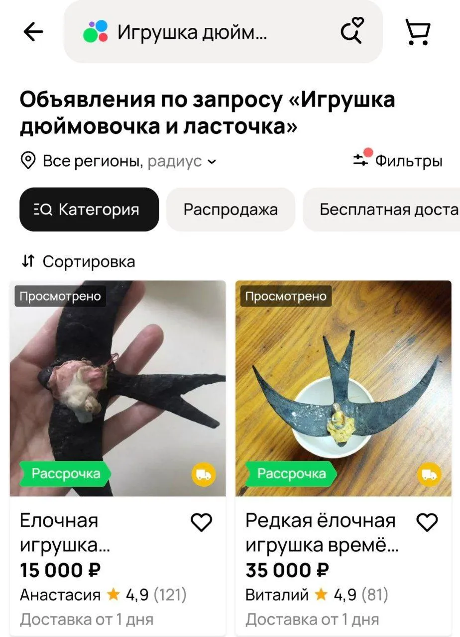 Если вы хотите узнать, какие игрушки стоят дорого, можно поискать списки редких моделей в интернете, сравнить фотографии с имеющимися у вас. Например, дорого можно продать наборы по сказке «Чиполлино», фигурки «Конек-Горбунок», «Дюймовочка и ласточка» или комплект «15 республик СССР». На «Авито» игрушка «Дюймовочка и ласточка» выставлена за 15-35 тысяч рублей. Поэтому, если у вас есть подобные дома, вы можете заработать неплохую сумму.