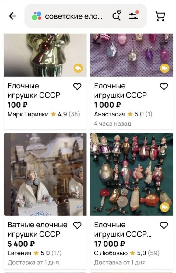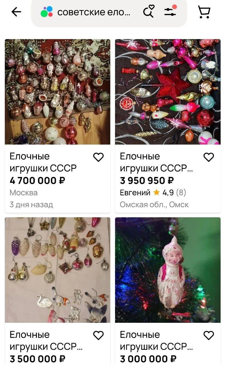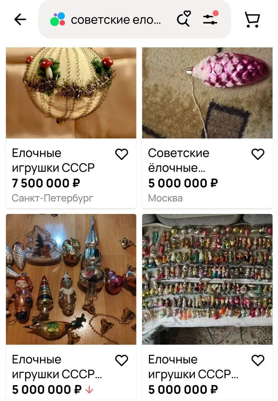 Максимальная цена на игрушки времен СССР достигает нескольких миллионов рублей. Так, игрушка ручной работы 1953 года, изготовленная в Ленинграде, выставлена за 7,5 миллиона рублей. Кроме того, есть наборы игрушек, которые внешне напоминают недорогие экземпляры за 300 рублей, но продаются за 3-5 миллионов рублей. Некоторые продавцы утверждают, что игрушки уникальны и являются раритетом, а другие просто пишут в описании «игрушки времен СССР», не указывая года или места производства.