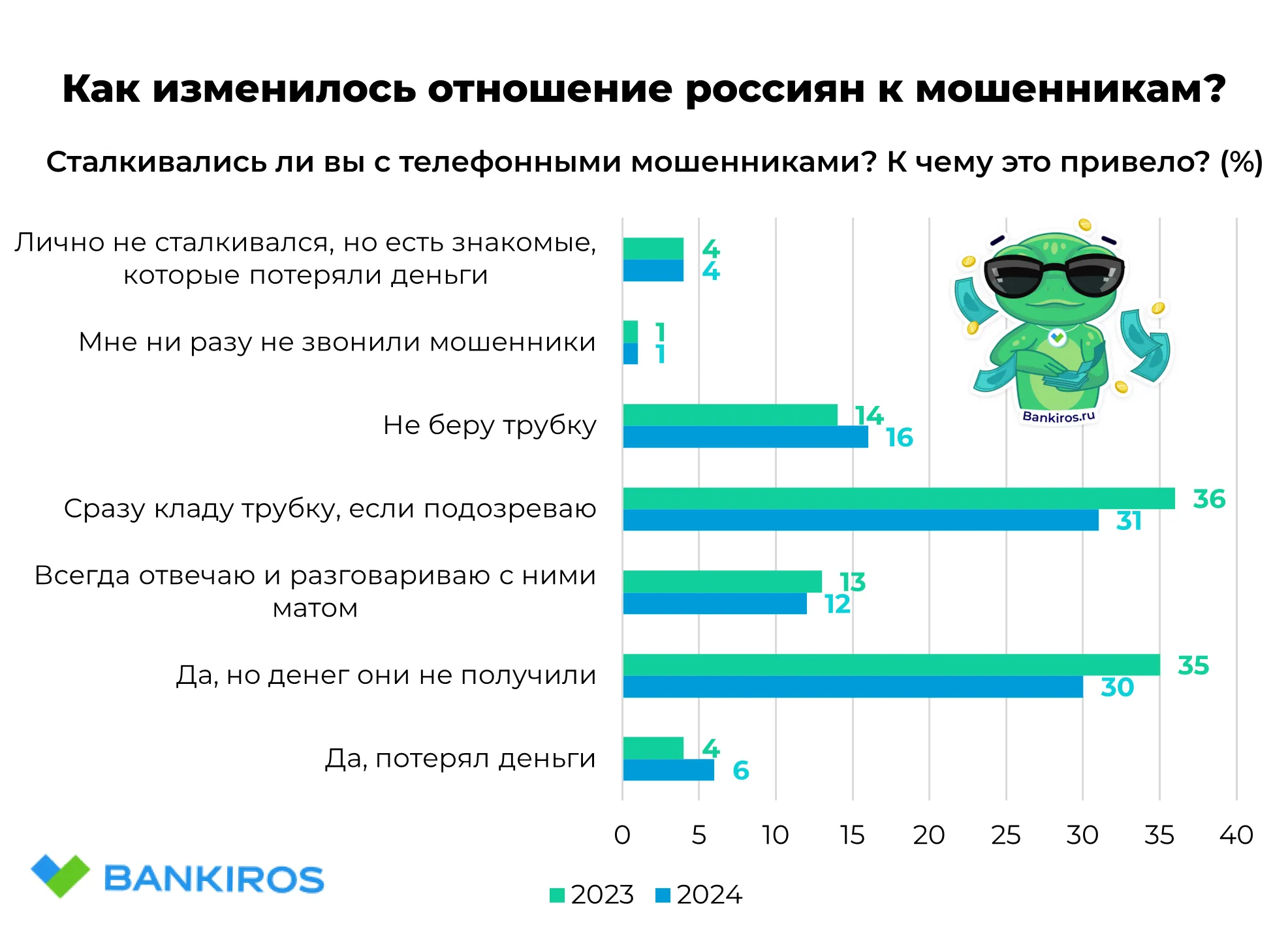 Однако выросло число граждан, которые потеряли свои деньги – с 4% до 6%. Большее число респондентов просто перестали брать трубки с незнакомых номеров.