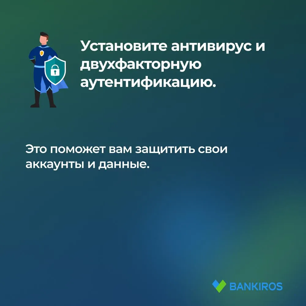 - Установите антивирус и двухфакторную аутентификацию для защиты своих аккаунтов и данных.