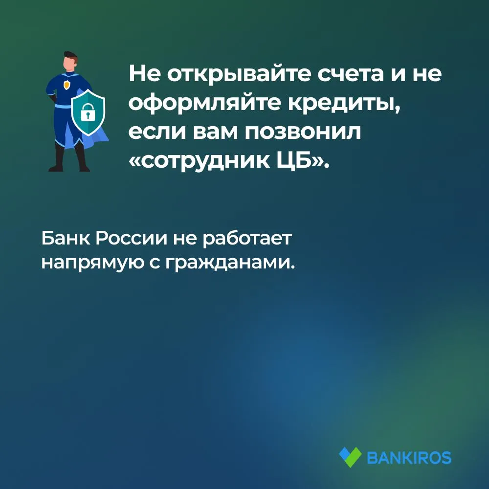 - Не открывайте счета и не оформляйте кредиты, если вам позвонил «сотрудник ЦБ». Банк России не работает напрямую с гражданами.