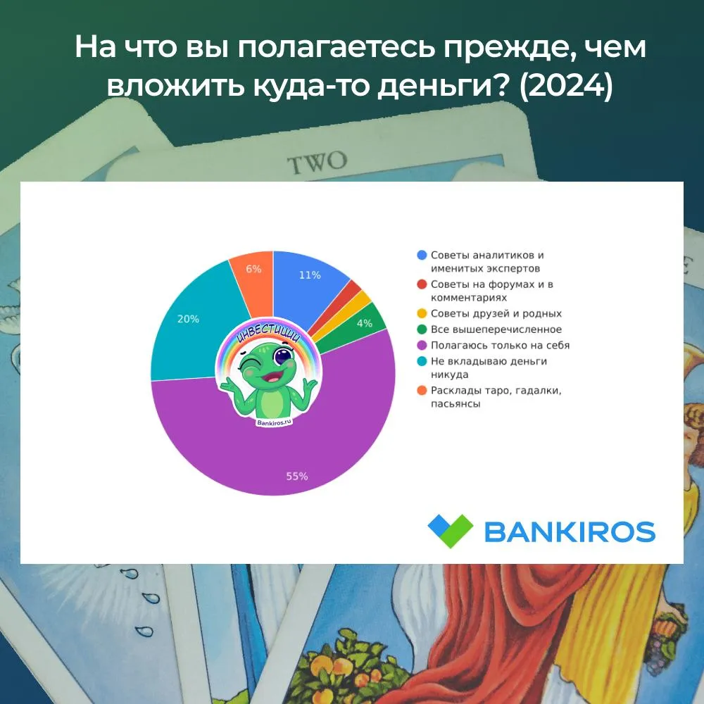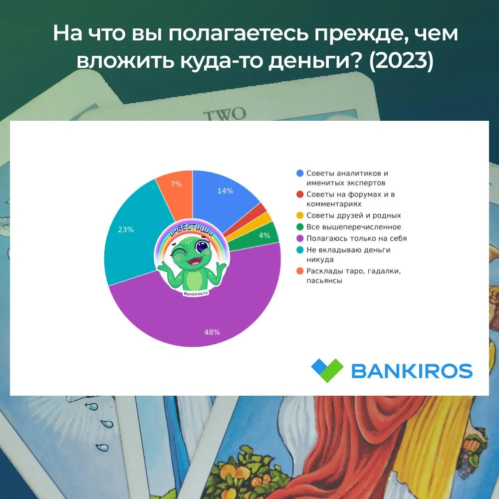 Граждане все еще верят гадалкам и раскладам на таро в финансовых вопросах.Bankiros.ru повторил свой прошлогодний опрос и узнал, чем руководствуются россияне прежде, чем вложить куда-то деньги?