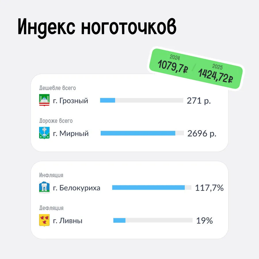 По данным Росстата за октябрь 2025 года маникюрная дефляция наблюдается в следующих регионах: