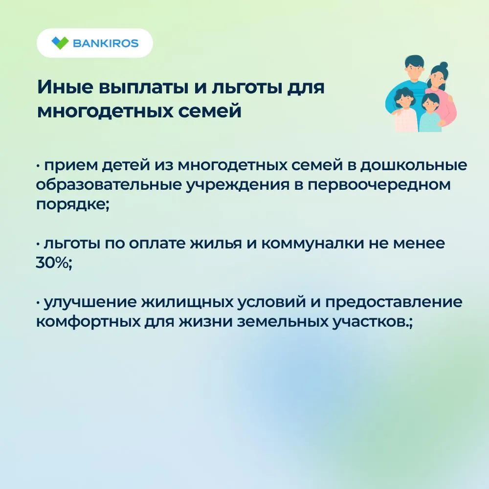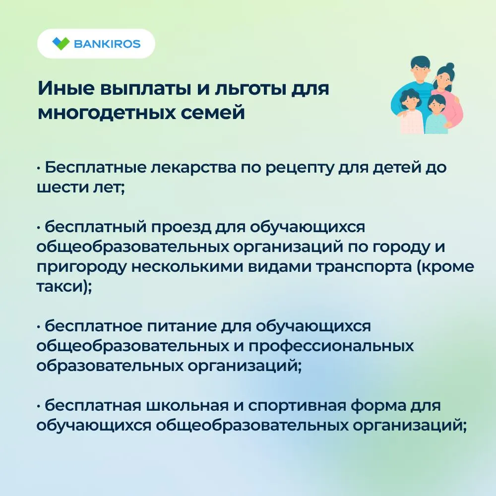 - Также регионы могут установить иные льготы и меры поддержки многодетных семей.