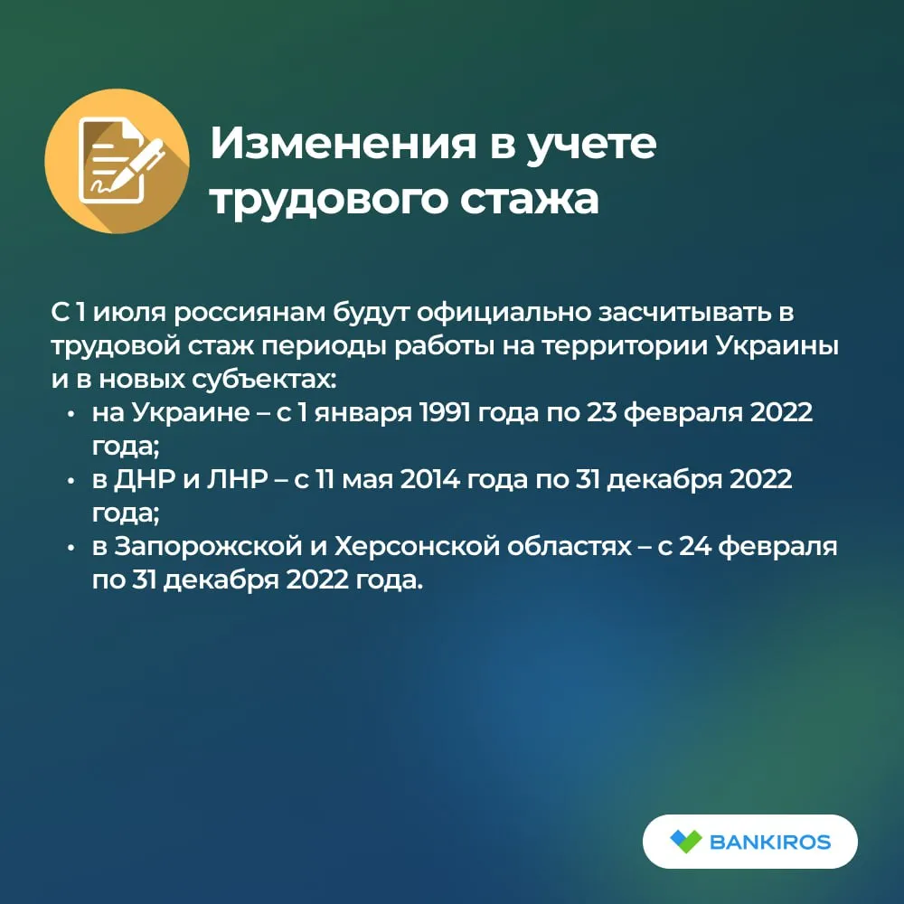 - В трудовой стаж начнут засчитывать работу на Украине и в новых российских регионах за конкретные периоды;