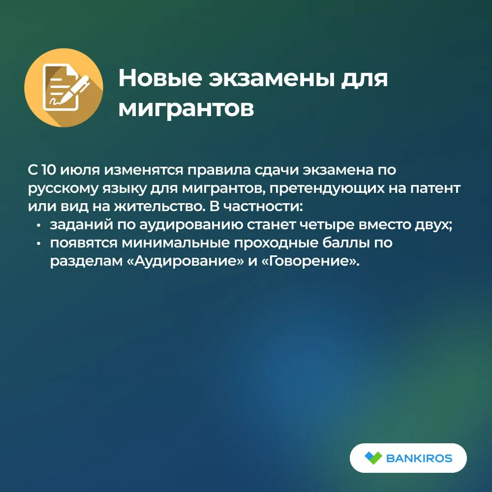 С 10 июля изменятся правила сдачи экзамена по русскому языку для мигрантов, претендующих на патент или вид на жительство. В частности: