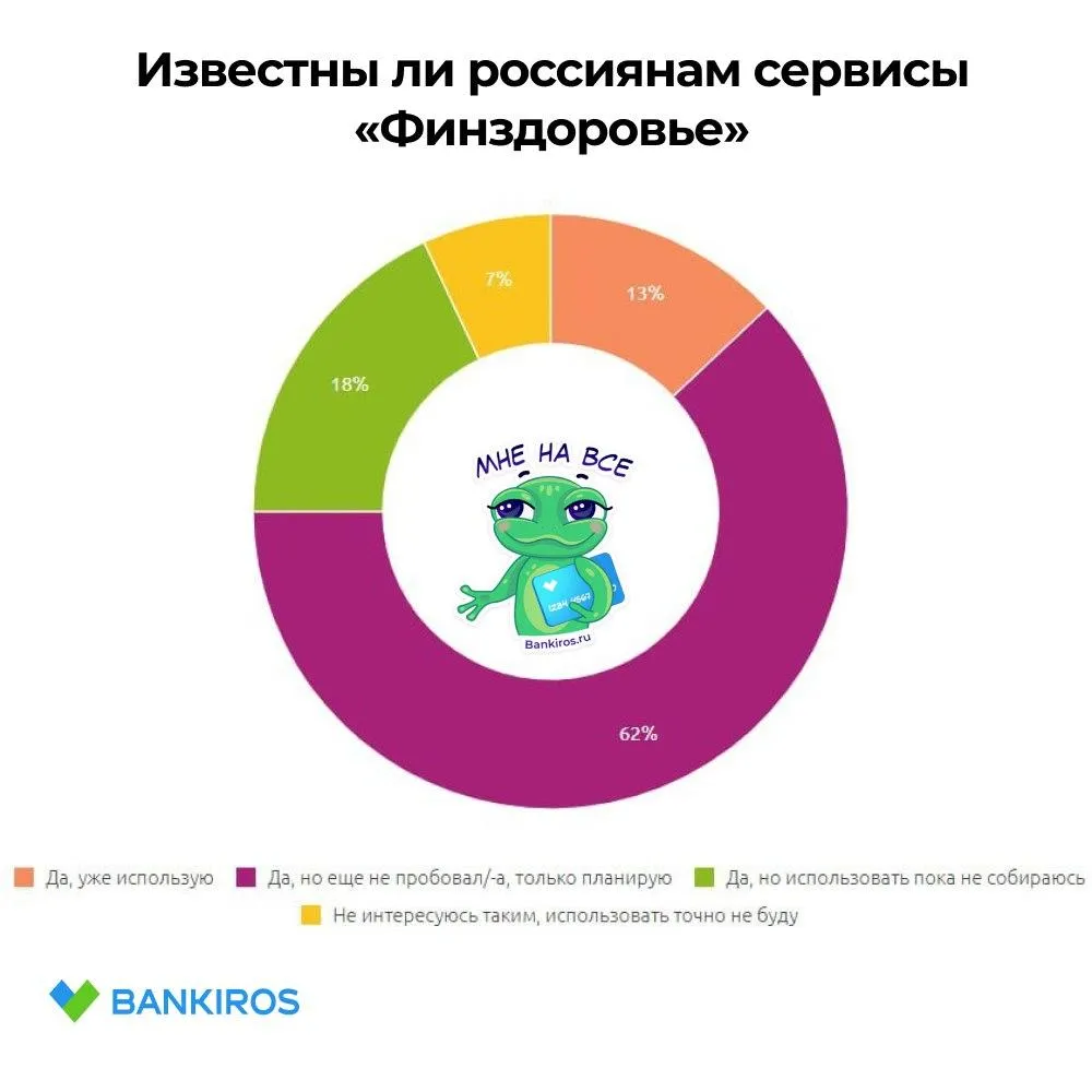 Более половины опрошенных (76%) ответили, что впервые слышат о таком финансовом инструменте. 13% респондентов считают сервис «очередной заманухой». 3% опрошенных сообщили, что слышали о существовании «Финздоровья», но еще не видели такого сервиса.