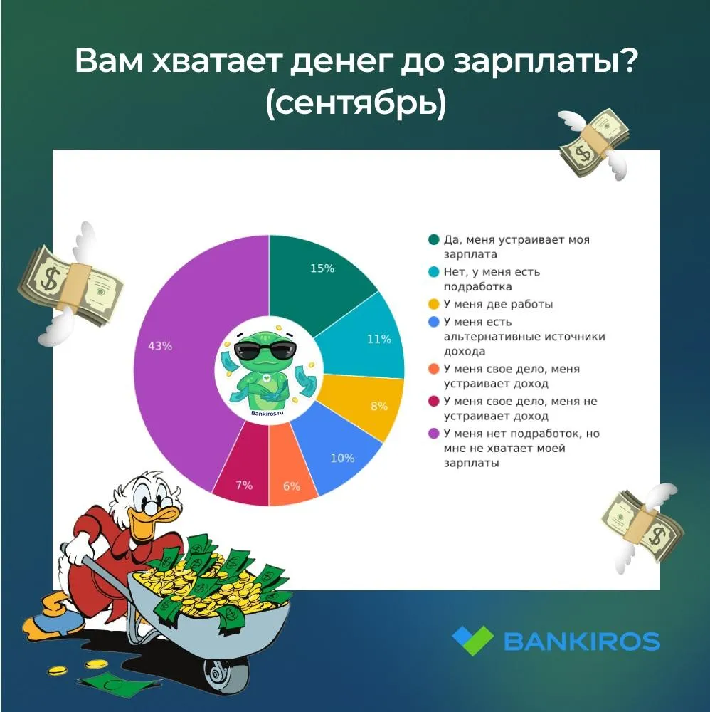 Полгода назад мы провели опрос, где спросили у подписчиков, хватает ли им денег до зарплаты. Тогда большинство респондентов признались, что еле сводят концы с концами и зарплаты им не хватает. Изменилась ли ситуация сейчас? Bankiros.ru повторил опрос, чтобы это проверить.