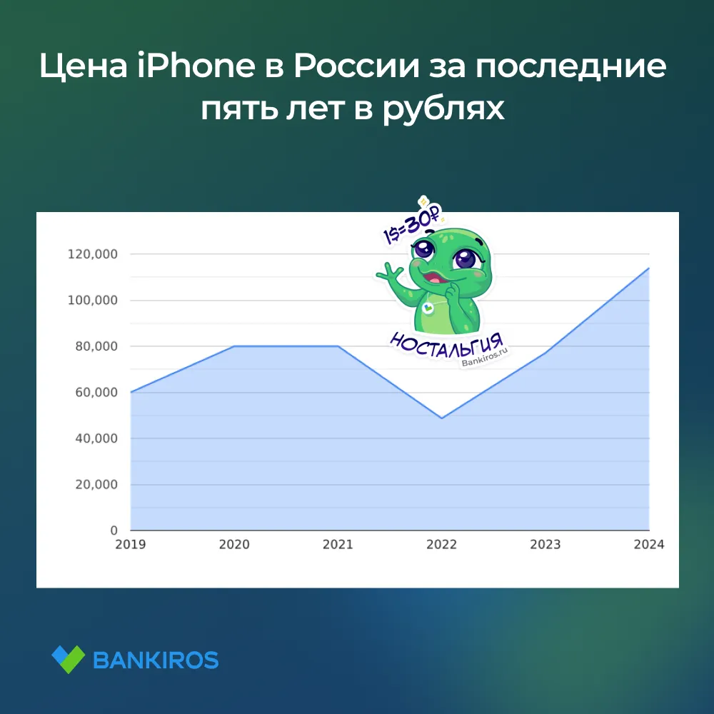- Исходя из анализа цен и курса валют за последние пять лет, iPhone был дешевле всего в 2022 и 2023 году;