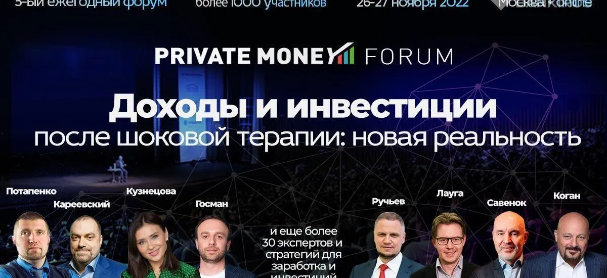 26 и 27 ноября в Москве с онлайн-трансляцией по всему миру пройдет 5-й по счету PRIVATE MONEY 2022 – важнейшее мероприятие этого года для частных инвесторов.