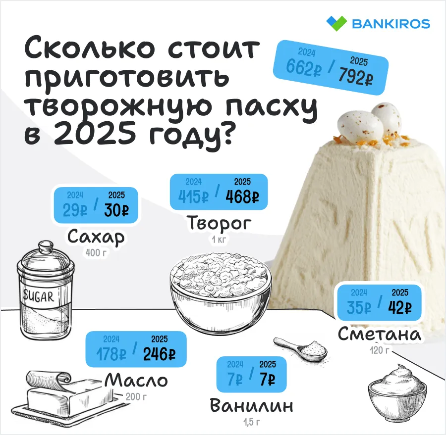 - Приготовить творожную пасху можно за 792 рубля, на 20% дороже, чем год назад;