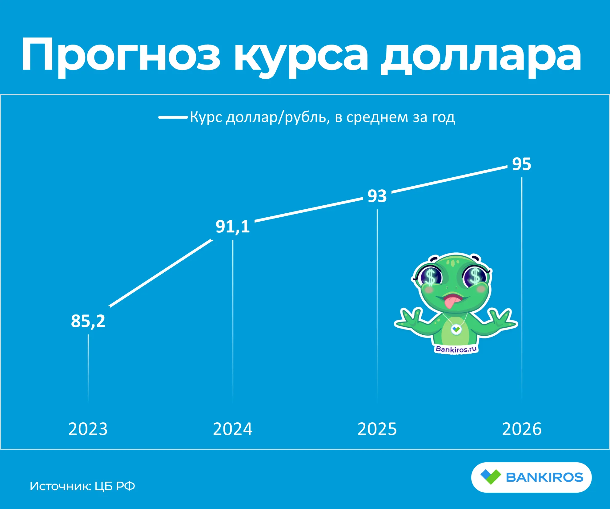 - Доллар в 2024 году будет в среднем стоить 91,1 рубля, а к 2026 году вырастет до 95 рублей.