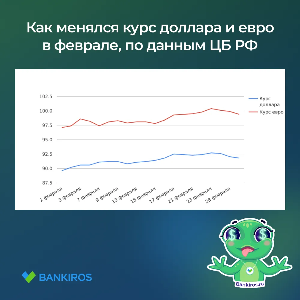 Нацвалюта по отношению к доллару и евро ослабела в феврале, возможно продолжение девальвации рубля и в марте. Bankiros.ru рассказывает, почему упал рубль и, что будет с курсом валют дальше.
