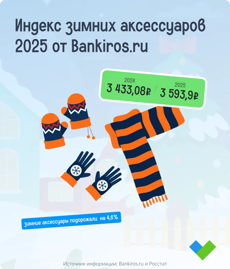 - утеплиться зимними аксессуарами в 2025 году обойдется в 3 593,9 рубля;