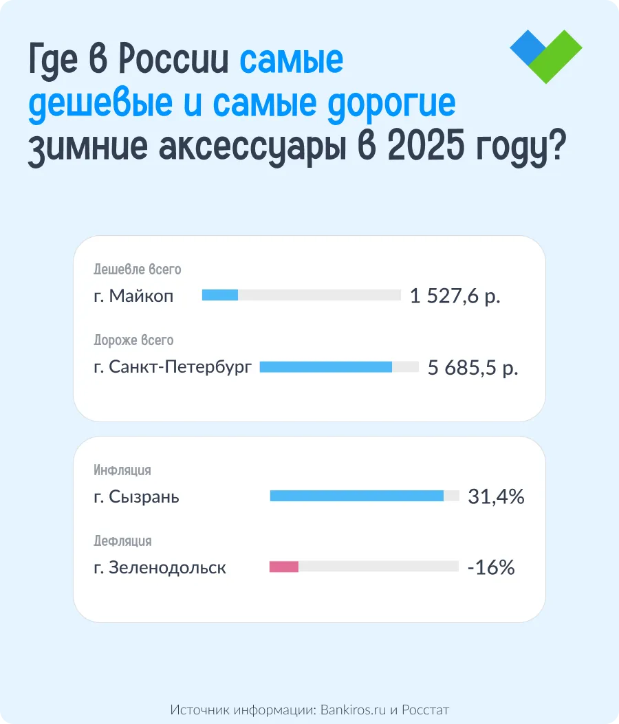 Разница в 4 157,9 рубля между городами, где дешевле и где дороже всего купить зимние аксессуары.Какая стоимость в 2024 и 2025 годах?