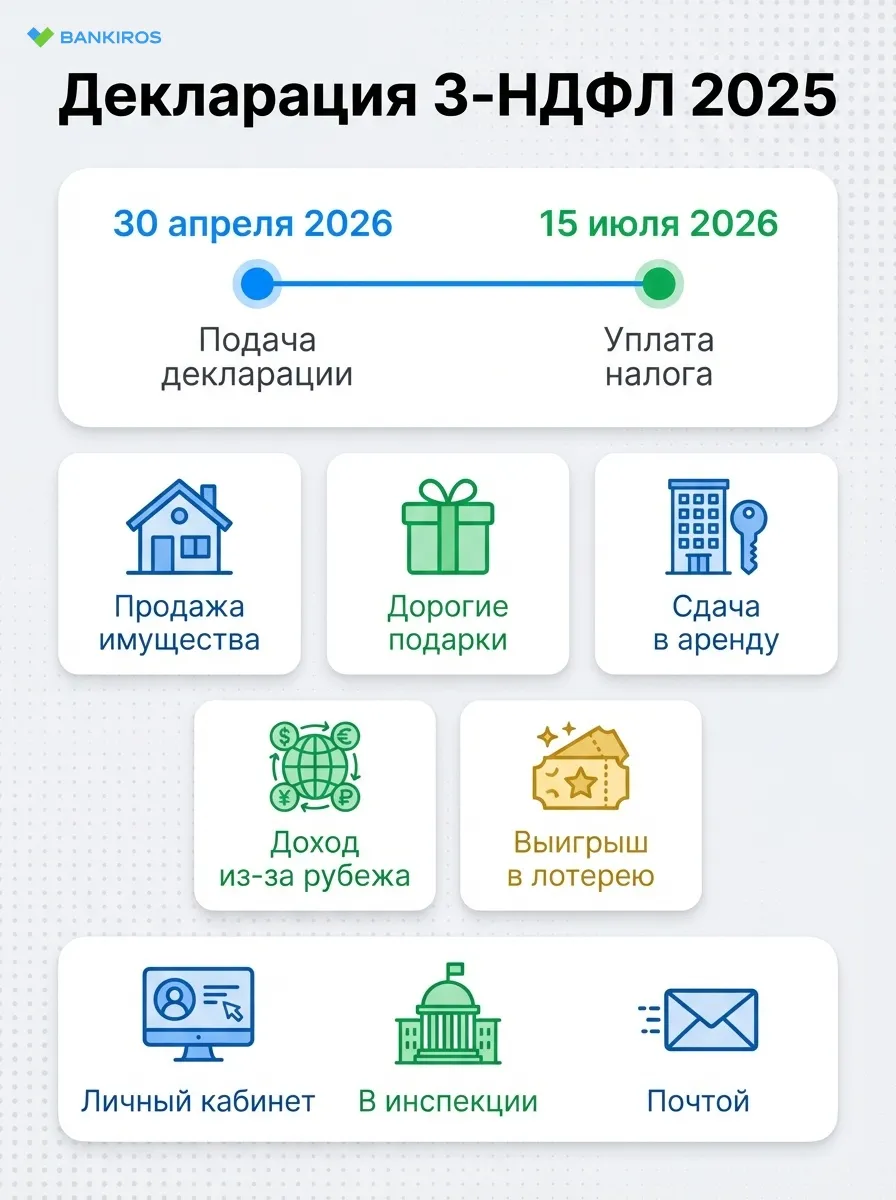 - До 30 апреля 2026 года включительно россиянам необходимо подать декларацию 3-НДФЛ за доходы, полученные в 2025 году, если налог с них не был удержан;