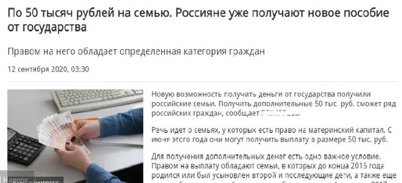 Дополнительный доход в 50 тысяч рублей могут получить российские семьи, у которых есть право на материнский капитал. Такую информацию на днях распространили несколько СМИ. Bankiros.ru выяснил, соответствует ли она действительности.