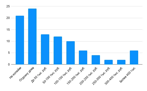 - начиная с бюджета от 250 тысяч рублей, наблюдается увеличение доли респондентов, готовых потратить больше;