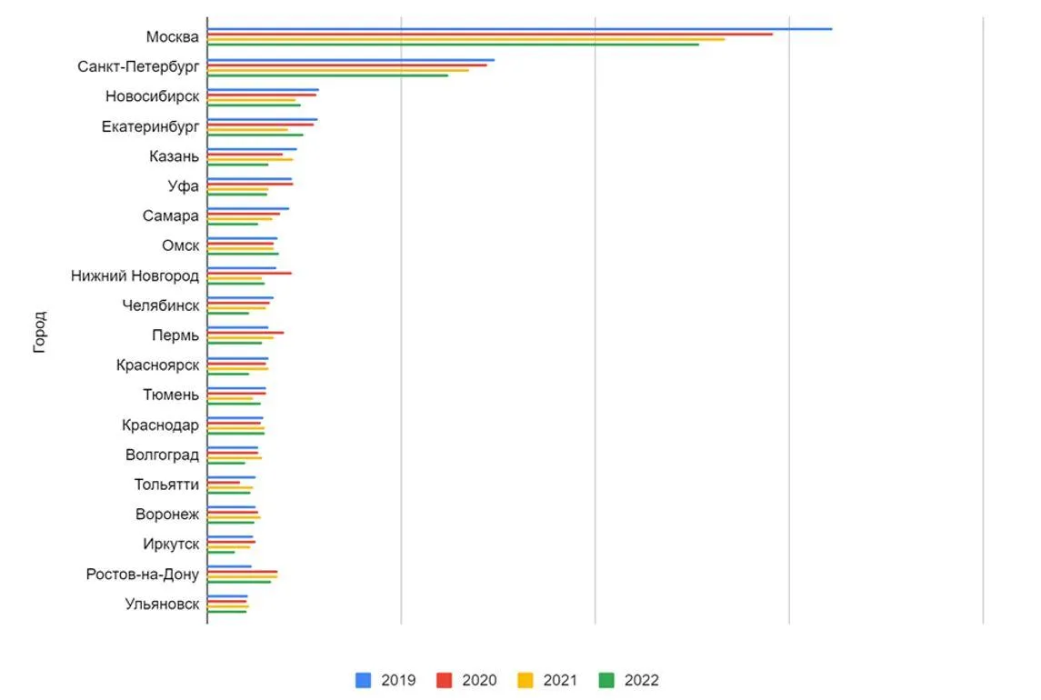Основной поток новых клиентов обыкновенно обеспечивают города-миллионники: Москва, Санкт-Петербург, Новосибирск и Екатеринбург. Пандемия сократила число клиентов из этих городов: так, ранее на Москву приходилось более 8% всех новых клиентов, а сейчас их доля не доходит до 6%.