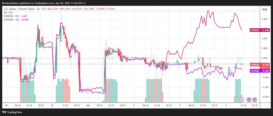 Таким образом, вечером в четверг, 3 апреля, когда мир главным образом обсуждал введенные тарифы Трампа, рубль рос на решении Минфина РФ перейти в апреле к продаже валюты в рамках бюджетного правила. Но уже к вечеру нацвалюта скорректировалась из-за сильного падения цен на нефть на решении ОПЕК+.