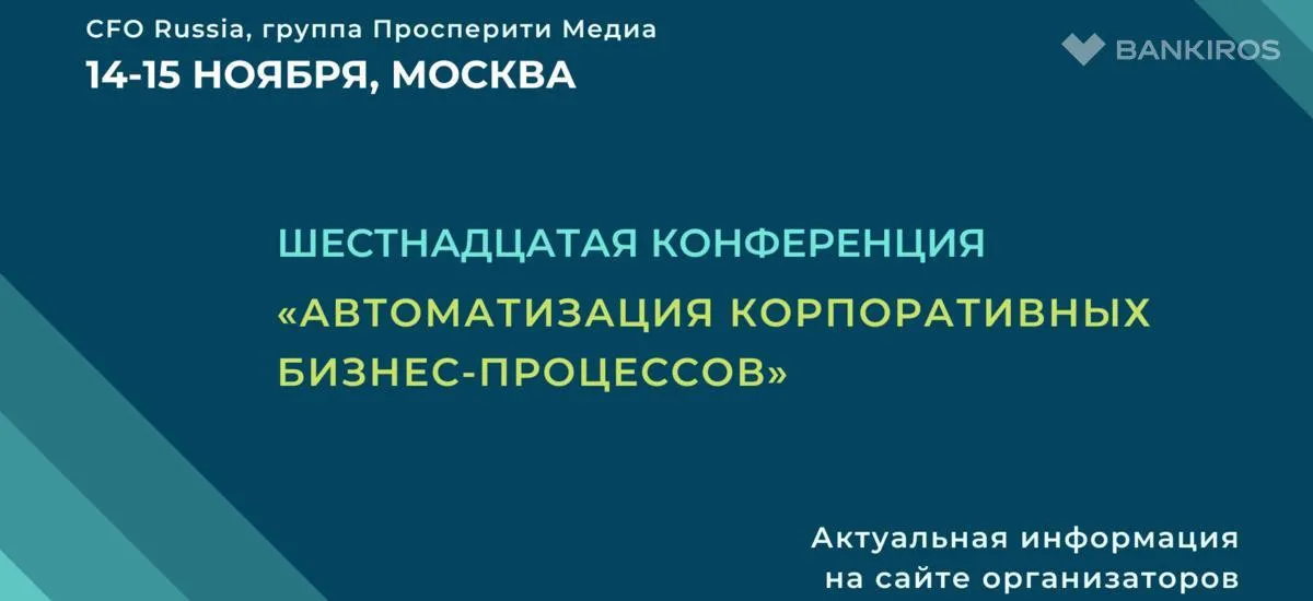 14-15 ноября в Москве состоится Шестнадцатая конференция «Автоматизация корпоративных бизнес-процессов» организованная группой «Просперити Медиа» и порталом CFO-Russia.ru.