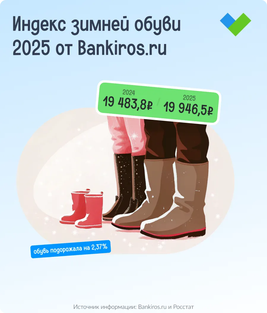 - в 2025 году три пары зимней обуви на семью с ребенком стоят 19 946,5 рубля;