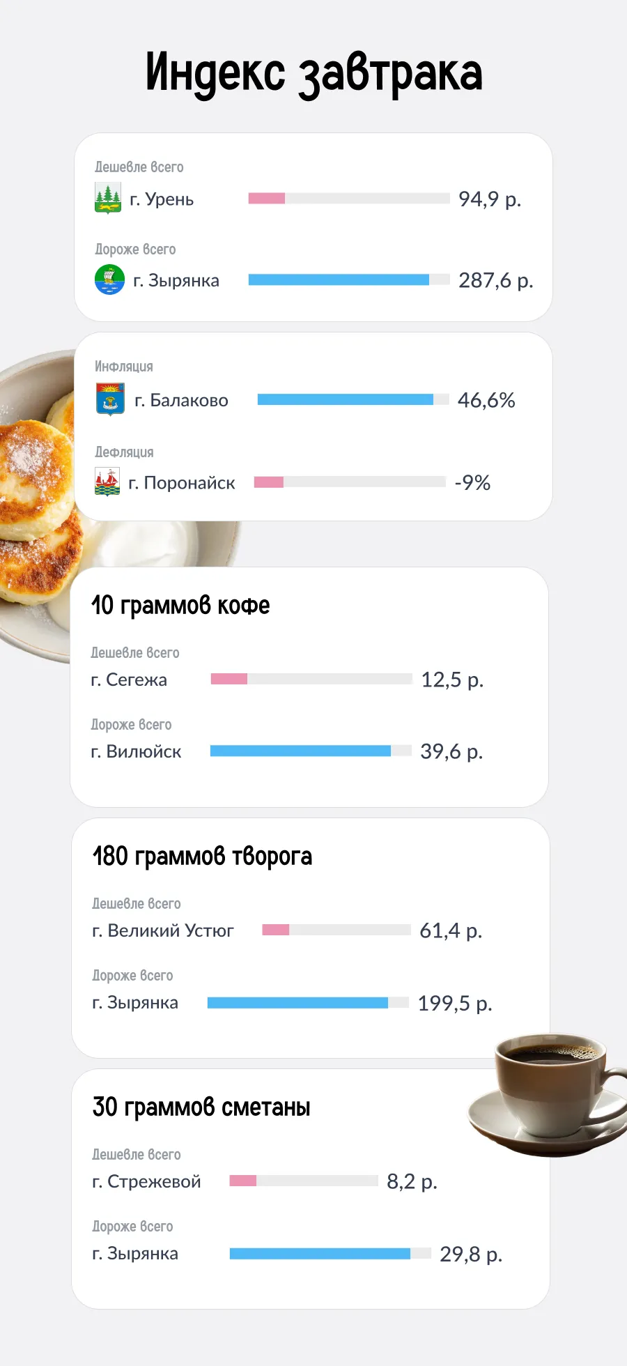 Где в России дороже всего приготовить сырники со сметаной и кофе?
