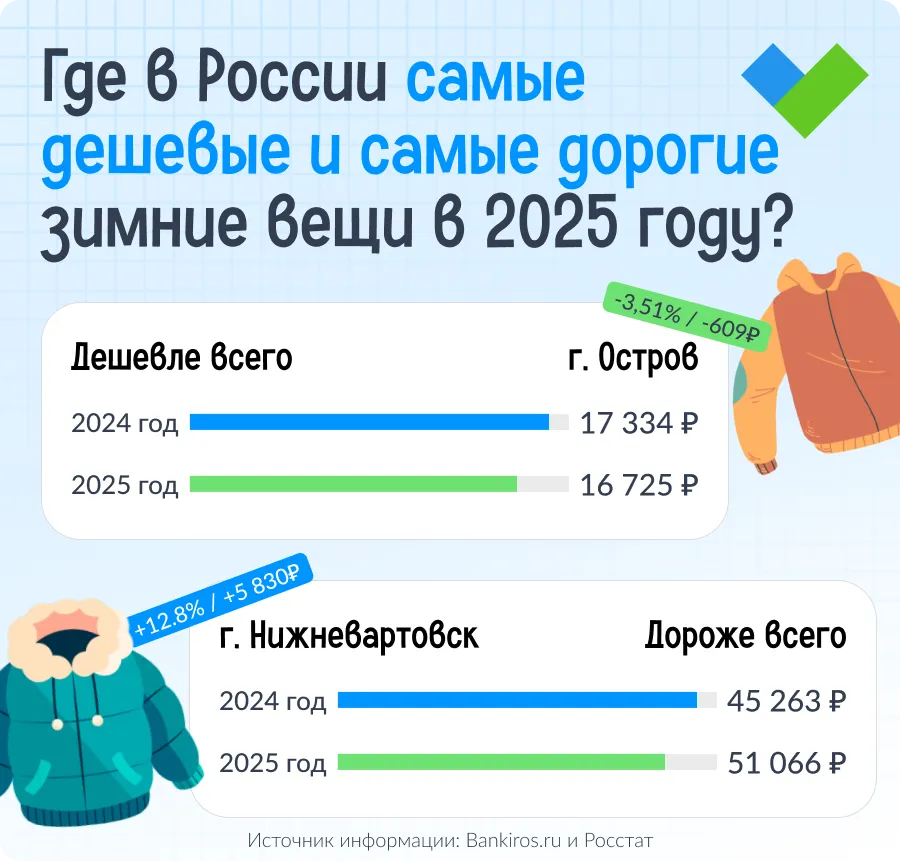 Цены на верхнюю зимнюю одежду по регионам в 2025 году
